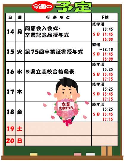 3月13日(日)「今週の予定」