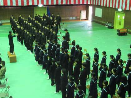 3月15日(水) 2学年 「卒業式に向けて」 公開日 2022/03/16 更新日 2022/03/16 2年生 本日の卒業式を迎えるにあたり、2年生中心となって準備を進めてきました。 卒業生を送る歌では、よりよい合唱にするために、パートリーダー中心となって練習を重ねてきたり、会場の準備や片付けなども一生懸命に動いたりしていました。 今までお世話になった3年生に最大限の感謝の気持ちが伝わるように、2年生としての役割を果たしていました。