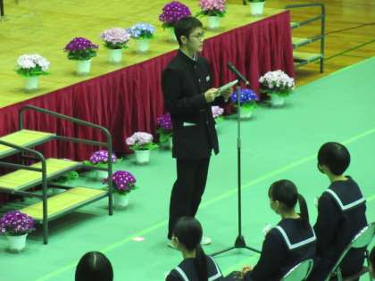 「これまで先輩方が築き上げてきた上滝中学校の伝統を私たちがしっかりと引き継ぎ、この学校をさらに素晴らしい学び舎へと導いて行かなければいけません。」