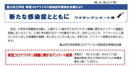 ★新型コロナウイルス感染症対策検討会議だより16 公開日 2022/03/17 更新日 2022/03/17 お知らせ※2024以前 標記のたよりが届きましたので案内します。 以下のリンクからご覧下さい。 なお、明日プリントでも配布します。 リンク:★検討会議だより16