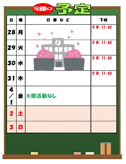 3月27日(日)「今週の予定」