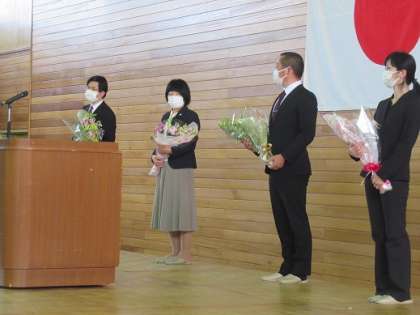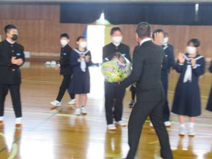 別れを惜しむ教員の言葉に生徒達は耳をかたむけていました。