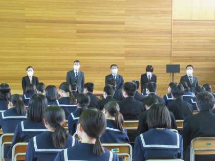 3年生は、学級会長が号令をかけ、新しい学級担任に大きな声で「よろしくおねがいします」の挨拶をしました。さすが、3年生!と思わせる、心温まる場面でした。
