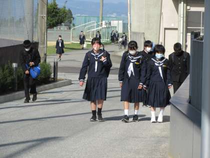 4月12日(火) 登校風景 公開日 2022/04/12 更新日 2022/04/12 お知らせ※2024以前 おはようございます。 今日も、快晴で気持ちのよい朝です。 入学3日目の1年生も、さわやかな挨拶でスタートしています。