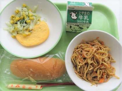 4月18日(月)今日の給食 公開日 2022/04/18 更新日 2022/04/18 お知らせ※2024以前 今日の献立は、焼きそば、オムレツ、えごまドレッシングサラダ、コッペパン、棒チーズ、牛乳です。