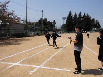 いよいよ春のスポーツテストが始まりました。晴天の中、本日は50m走です。男子の中には6秒前半に迫るタイムを出す人もいました。春季総体や体育大会が楽しみですね。