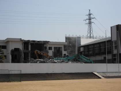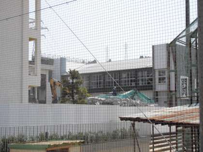 4月20日(水)「保健体育の授業の後ろでは・・・」 公開日 2022/04/20 更新日 2022/04/20 3年生 グラウンドでスポーツテストが行われる後ろでは旧校舎の取り壊しが進んでいます。寂しいですが、見慣れてしまい、誰も気にすることなく授業に集中しています。今は、水分補給の時間です。たまには昔を思い出し、見守ってあげましょうね。