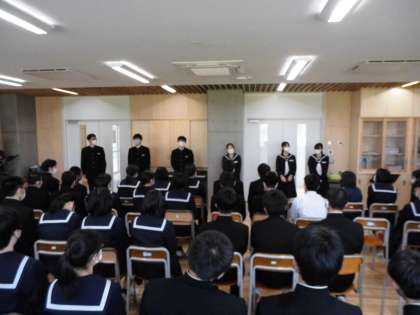 4月20日(水)3年生「体育大会に向けて・・始動その1」 公開日 2022/04/21 更新日 2022/04/21 3年生 いよいよ体育大会に向けて3年生は活動を開始しました。まず、学校全体を動かしていく体育大会実行委員が、それぞれの決意を発表しました。委員の熱い思いがビンビン伝わってくるすばらしい挨拶でした。