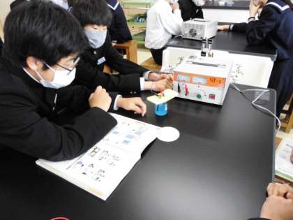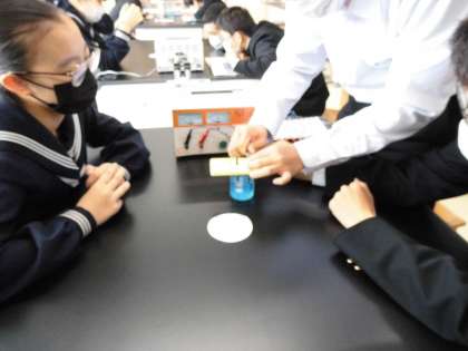 4月22日(金)3年生「塩化銅水溶液の電気分解」