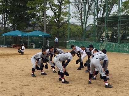 4月24日(日)に野球部は奥田中学校のグランドで、奥田中学校と練習試合を行いました。