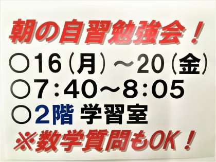 5月11日(水)2年生「朝の自習勉強会」お知らせ