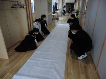 5月13日(金)3年生「体育大会実行委員も朝から頑張ってます」 公開日 2022/05/13 更新日 2022/05/13 3年生 体育大会実行委員のメンバーが朝から集合し、テーマをどのように仕上げるか相談しています。下書きは昨日中に終了。いよいよ着色に取りかかります。隙間の時間を見つけて、活動しています。さすが3年生ですね。
