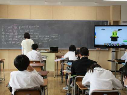 モニタに出た出席番号の生徒が答えを発表するので、どの番号が出るのかドキドキしながら注目しています。