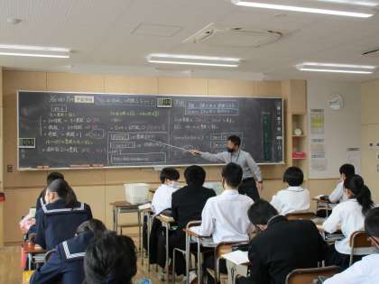 文字を含んだ説明はなかなか難しく、生徒たちは先生の説明を集中して聞いています。
