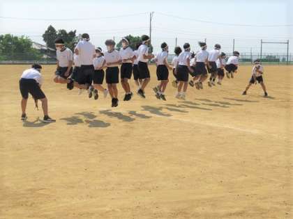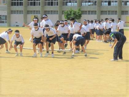 白団は、時間をかけて練習していました。長縄の回し手は、選手が飛びやすいように、縄を「低く、高く」回しています。足を広げ構える姿は、気合いが入っています。台風の目も本番さながらの気迫がありました。