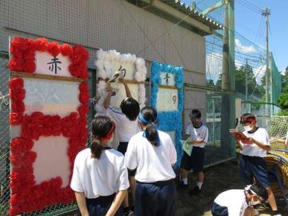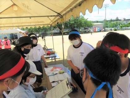 5月28日(土)体育大会 係1 公開日 2022/05/29 更新日 2022/05/29 学校生活 決勝係からきたデータを記録係がまとめ、得点掲示し、放送係にスムーズに伝えました。招集係の働きもよく、時間どおりに体育大会は進行しました。