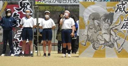 各団テーマに沿って、思いを込めて描きました。デコ長が代表して説明しています。