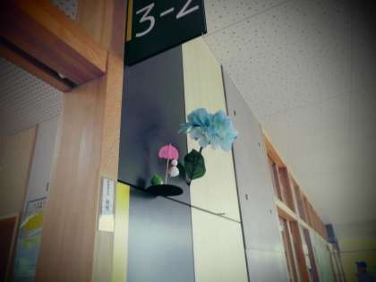 いよいよ梅雨のシーズンに入ります。じめじめした雰囲気が少しでもさわやかになるように、教室入り口もちょっぴり衣替え?いや模様替えをしました。湿度に負けず、部活に勉強に頑張っていきましょう。