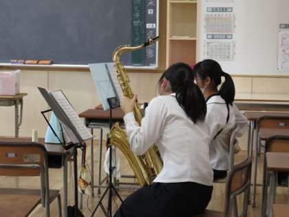 6月1日(水)部活動の様子 公開日 2022/06/01 更新日 2022/06/01 お知らせ※2024以前 吹奏楽部は、コンクールに向けてパート練習真っ最中です。初めて楽器に触る1年生に、上級生が丁寧に教えてくれます。今年は、たくさんの1年生が吹奏楽部に入部しました。大きく成長してくれることを期待しています。