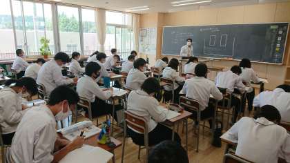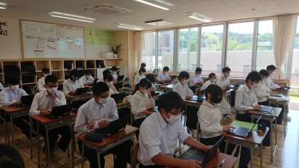 クロムブックを使用し、デジタル教科書を使って学習を進めています。