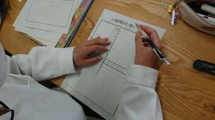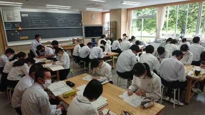 6月3日(金) 3年生「授業風景その2」 公開日 2022/06/03 更新日 2022/06/03 3年生 3年2組は美術の授業です。 二点透視図法について学習しています。バランスが難しいようで、教科担任の先生に質問を繰り返しながら、活動を進めていました。