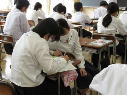 6月9日(木)2年生「授業の様子」 公開日 2022/06/09 更新日 2022/06/09 お知らせ※2024以前 1組の理科の授業は「金属と結びつく酸素の質量とそのグラフ」の学習です。互いに教え合ったり、表の見方を確かめたりして理解を深めていました。