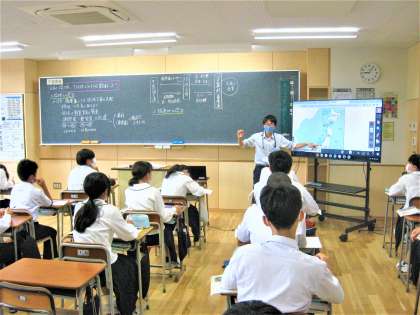 1組は社会。江戸幕府と琉球王国との関係等について、興味深そうに学んでいました。