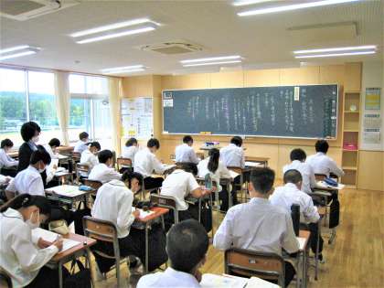 2組は国語。好きな短歌を選び、自分の知識や経験と結び付けて感想を書いていました。