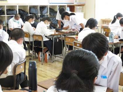 6月21日(火)授業風景 公開日 2022/06/21 更新日 2022/06/21 お知らせ※2024以前 班での学習も増えました。わからないことを聞いたり、友達に説明したりしながら「しっかりと理解」することができています。自然とだれとでも話すことができるのは、上滝中生の強みです。