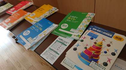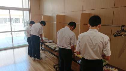 生徒一人一人、内容を吟味しながら、どれが自分に合った参考書なのか考えたり、友達と相談したりしながら、休み時間に見ています。