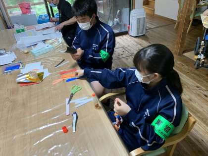 折り紙を切って、季節に合った飾り付け作りの手伝いをしました。利用者の方が喜んでくださると思います。