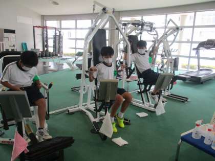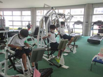7月5日(火)2年生「社会に学ぶ『14歳の挑戦』」 公開日 2022/07/05 更新日 2022/07/05 2年生 「大山総合体育センター」さんにて。 インストラクターの方にコツを教えてもらいながら、トレーニングを行っていました。
