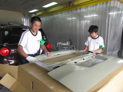 7月5日(火) 2年生 「社会に学ぶ『14歳の挑戦』」 公開日 2022/07/05 更新日 2022/07/05 2年生 「(株)仁平」さんにて。 工場内で車の板金を磨いていました。 丁寧で真剣な姿が見られました。