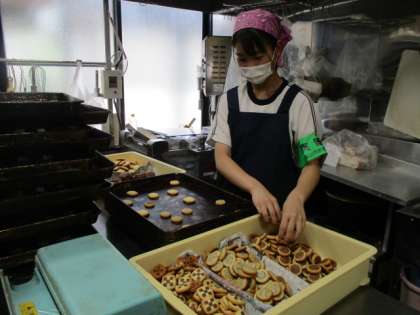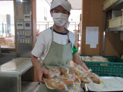 7月5日(火) 2年生 「社会に学ぶ『14歳の挑戦』」 公開日 2022/07/05 更新日 2022/07/05 2年生 「ぱんだぱんだ」さんにて。 クッキーの担当、袋詰めして店頭に出す担当、道具片付けの担当など、様々なポジションで一生懸命に働いていました。