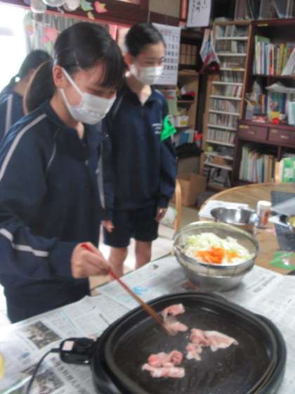 7月6日(水) 2年生「社会に学ぶ『14歳の挑戦』」 公開日 2022/07/06 更新日 2022/07/06 2年生 「おらとこ」での活動の様子です。 ホットプレートを使って、昼食のやきそば作りを手伝いました。 事業所のスタッフの方の呼びかけに、「ハイ!」と元気に答えています。