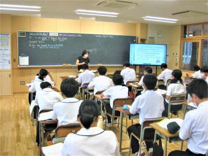 2組は英語。「because」を用いて、理由を表す構文について意欲的に学んでいました。