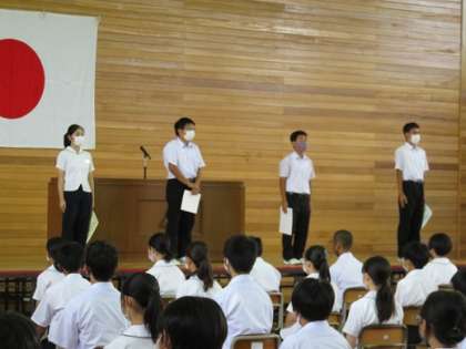 陸上競技部、吹奏楽部は賞状を全校生徒に披露しました。