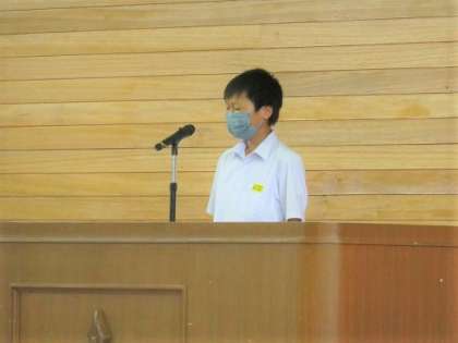 7月22日(金)意見発表会 公開日 2022/07/24 更新日 2022/07/24 お知らせ※2024以前 各学年の代表者が意見発表をしました。1年生は、中学校の勉強を頑張ったこと、部活動ではさらに磨きをかけたいという抱負を述べました。2年生は「社会に学ぶ『14歳の挑戦』」を通して大きく成長できたこと、また部活動では「自分史上、最も暑い夏にする」という決意表明しました。3年生は、体育大会での成功、生徒会活動の成果を語りました。仲間と成し遂げることのすばらしさを下級生に伝えました。