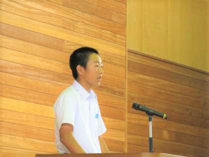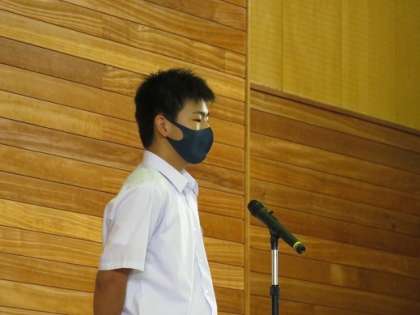 7月22日(金)意見発表会 公開日 2022/07/24 更新日 2022/07/24 お知らせ※2024以前 各学年の代表者が意見発表をしました。1年生は、中学校の勉強を頑張ったこと、部活動ではさらに磨きをかけたいという抱負を述べました。2年生は「社会に学ぶ『14歳の挑戦』」を通して大きく成長できたこと、また部活動では「自分史上、最も暑い夏にする」という決意表明しました。3年生は、体育大会での成功、生徒会活動の成果を語りました。仲間と成し遂げることのすばらしさを下級生に伝えました。