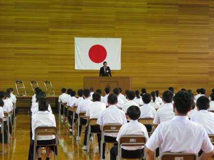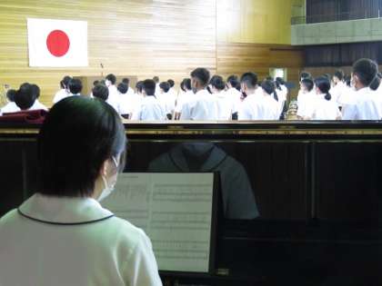7月22日(金)終業式 公開日 2022/07/24 更新日 2022/07/24 お知らせ※2024以前 校長の式辞では、まず、生徒の来校者への挨拶がすばらしいことを述べました。また、夏休みの学習や部活動を取組を有意義なものとし、特に、部活動の新人戦で手応えを感じてほしいと伝えました。2学期の始業式には、成長した姿で会えることを楽しみにしているという言葉を生徒一人一人はしっかりと受け止めていました。校歌を歌い、終業式を終えました。
