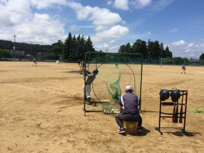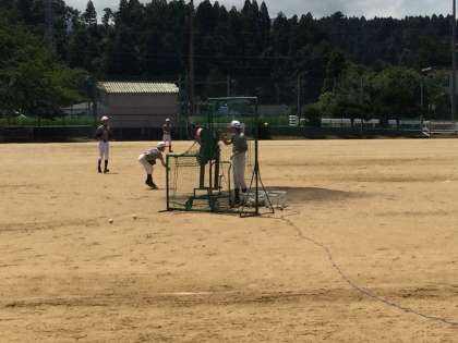 マシンを使ってバッティング練習やバント処理の練習にも取り組みました。