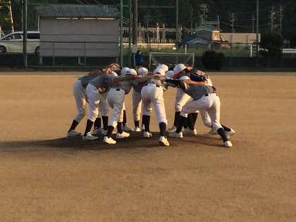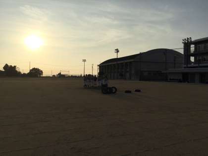 9月15日(木) 新人大会前日です。練習を終えて夕日を浴びながら、マウンドにて野球部恒例の「儀式」を行いました。各自の意気込みを語った後、スクラムを組み、明日の勝利を誓い合いました。