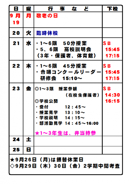 12/18( 木 ) ★保護者懇談会にお越しになる際に