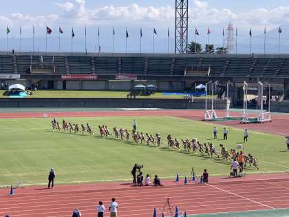 真夏のような暑い日差しが照りつける中、男子がスタートしました。