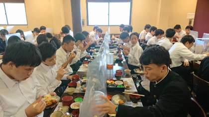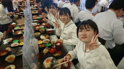 午前中の拝観を終えて、昼食タイムです。「奈良和み館」の方が、上滝中学校歓迎の絵を作って迎えて下さいました。この後、USJに向けて出発します。