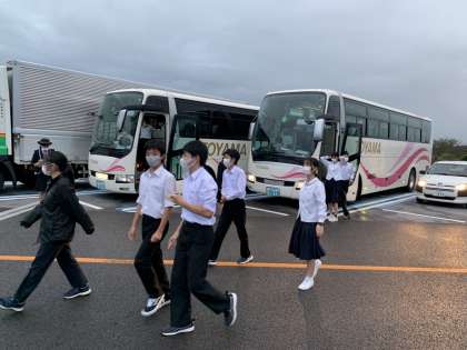 10月7日(金) 3年生 修学旅行 その33 公開日 2022/10/07 更新日 2022/10/07 3年生 尼御前SAにて最後の休憩です。疲れた様子もありますが、まだまだ元気そうです。 学校到着は19:00前後の予定です。