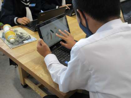 2組は美術で、文字のデザインに関する作品づくりをしています。