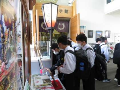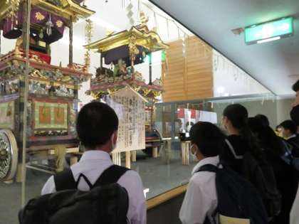 1年1組は、八尾に行きました。写真は曳山会館での見学の様子です。