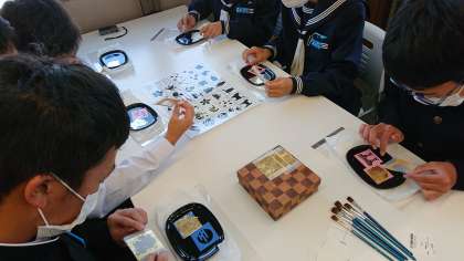石川県観光物産館での体験活動の様子です。とても面白いです。