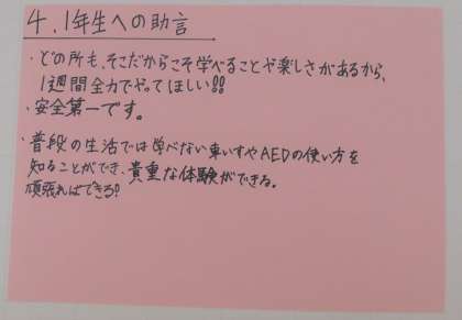 2年生から、1年生へのメッセージです。
